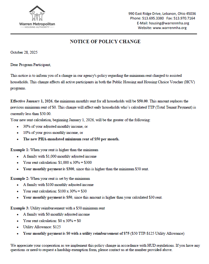 Notice of Policy Change